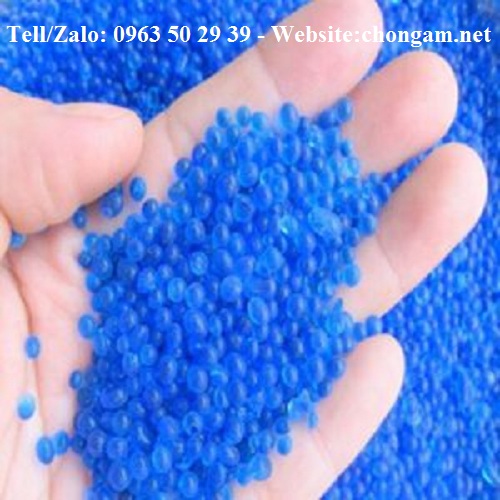 Khi chưa ngậm nước hạt chống ẩm màu xanh da trời xậm, khi ngậm nước hạt chống ẩm chuyển sang màu